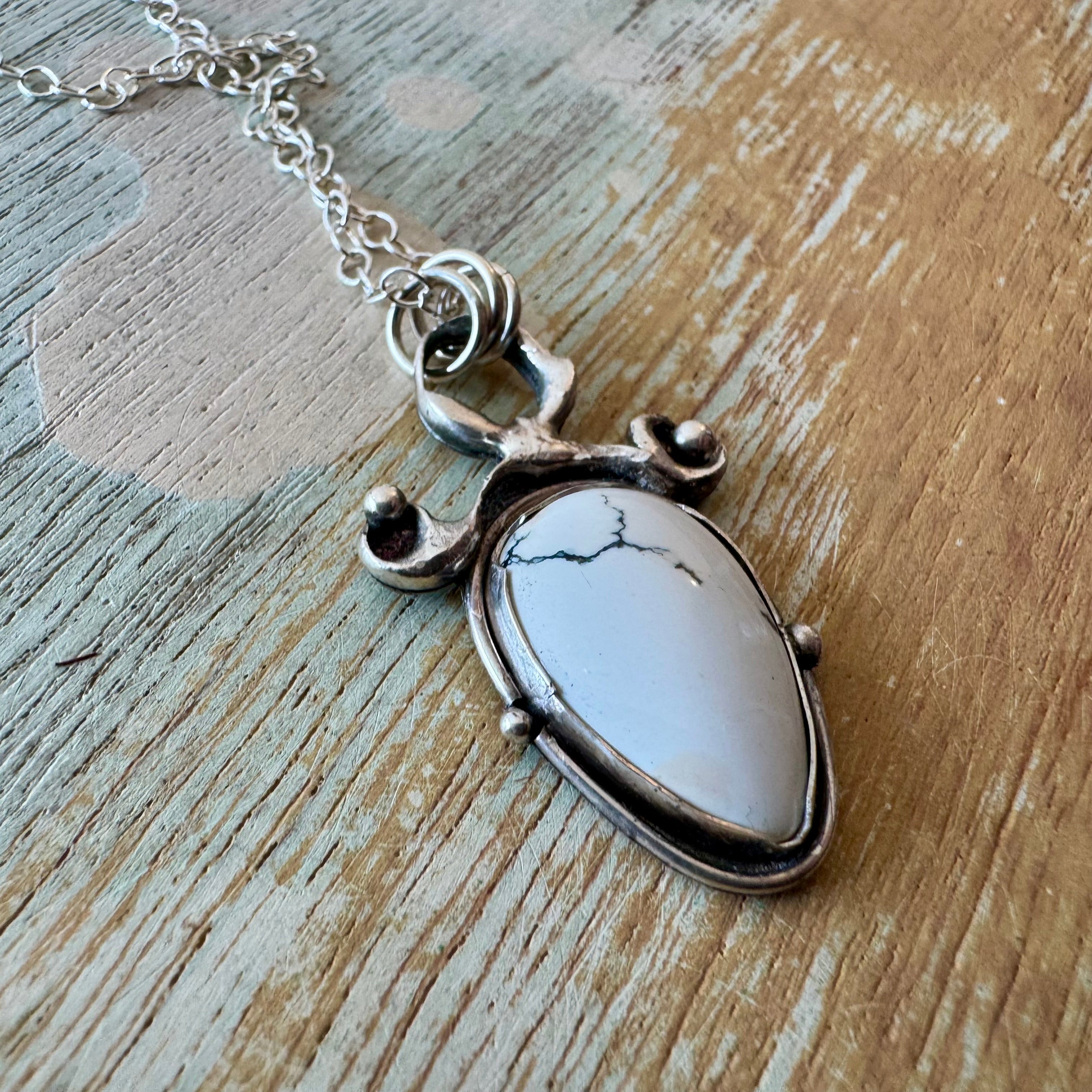 Ivory Creek Variscite in our handmade sterling silver setting, featuring fine silver organic details.  Suspended from 24" of sterling silver chain.  Pendant is approx 1 1/2" tall.